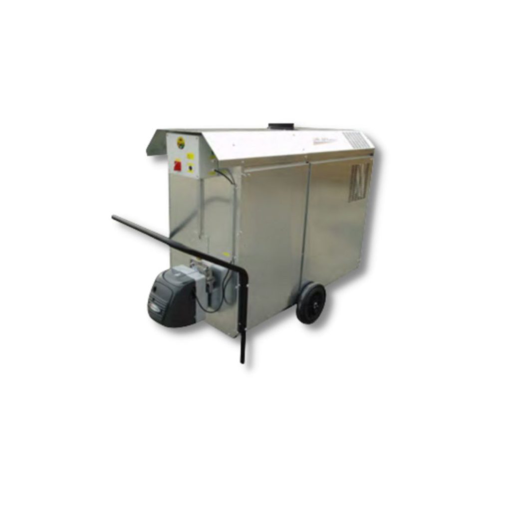 Según el caso, se puede optar por calefactores industriales de combustión (gas / gasóleo) o por un calefactor industrial eléctrico si interesa simplificar la instalación o evitar el uso de combustibles.